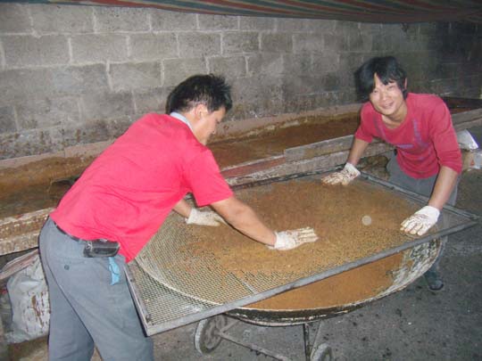 (冷却:把熬制好的红糖,倒入冷却槽内冷却)